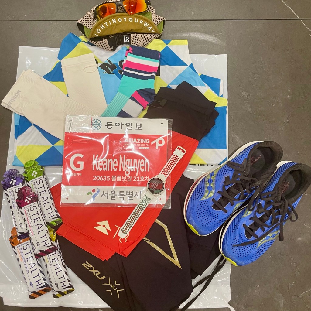 - Nutrition: 1 GU expresso gel 5 minutes before start. 7 energy gels from Stealth at 6/12/18/24/30/34/38km. 1 CrampFix shot at 35km. Splashes of water at aid stations and generous people of Seoul along the streets.